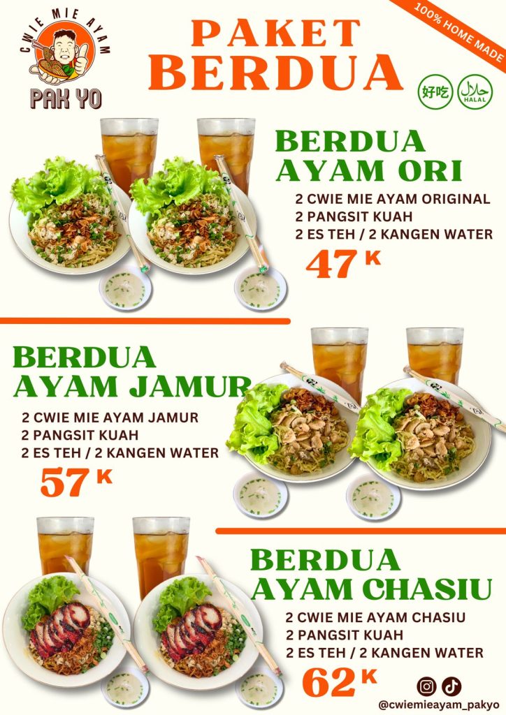 Ingin tahu menu apa saja yang kami sajikan? Di halaman ini, Kamu bisa melihat semua pilihan lezat dari Cwie Mie Ayam Pak Yo, mulai dari mie favorit pelanggan hingga variasi topping yang menggugah selera.